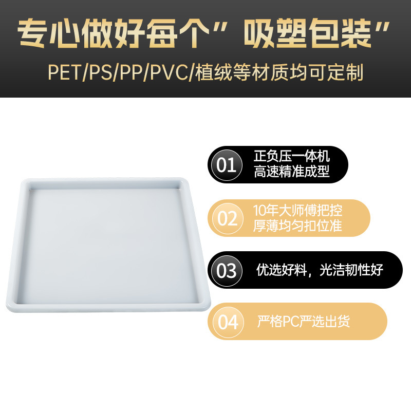 環保可持續: 吸塑托盤通常采用(yòng)可回收的材料制成,可以多次重複使用(yòng),減少了(le)對(duì)環境的影響,符合環保可持續發展的要求。 定制設計(jì): 吸塑托盤可以根據不同産品的尺寸、重量和(hé)形狀進行定制設計(jì),确保最佳的包裝和(hé)運輸效果,提高(gāo)整體包裝效率。 适用(yòng)廣泛: 吸塑托盤适用(yòng)于各種行業和(hé)領域,包括食品、飲料、醫(yī)藥、電子、汽車等,滿足不同行業對(duì)于産品包裝和(hé)運輸的需求。